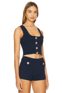 - 60% rayon 32% nylon 5% metallic 3% spandex - Made in China - Dry clean only - Hidden back zipper closure - Front button detail - Item not sold as set - Jersey fabric with metallic threading - Revolve Style No. ROFR-WS277 - Manufacturer Style No. SS24-9131
