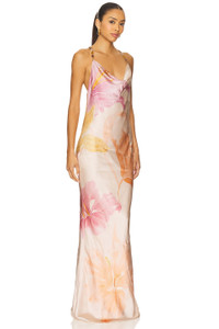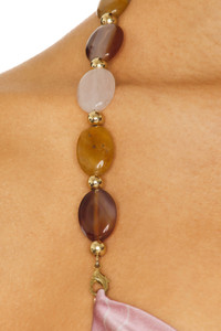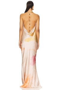 - Self: 96% viscose 4% elastane Lining: 95% polyester 5% spandex - Dry clean only - Fully lined - Back lobster clasp closure - Halterneck styling with multicolored beaded detailing - Draped neckline - Heavyweight satin fabric - Revolve Style No. ROFR-WD994 - Manufacturer Style No. R-PF25-11665-17
