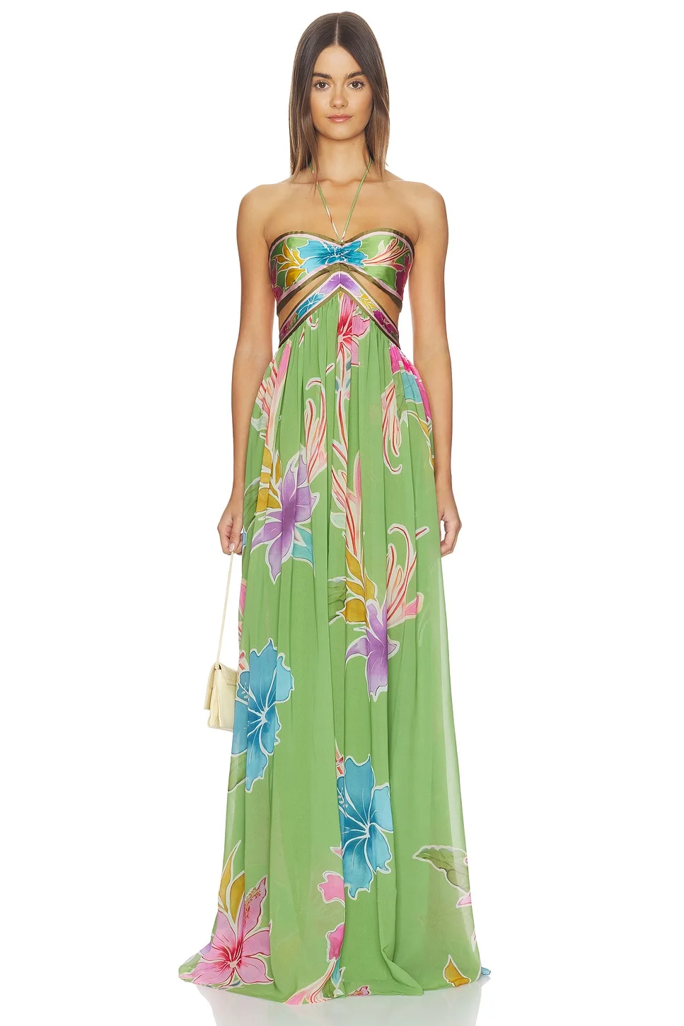 - Self 1: 96% viscose 4% spandex Self 2 & Lining: 100% polyester - Made in China - Delicate dry clean only - Fully lined - Partial back zip closure - Lightweight georgette fabric - Back cut-out detail - Revolve Style No. ROFR-WD1212 - Manufacturer Style No. R-SS26-12839-17