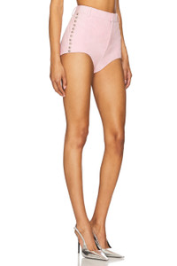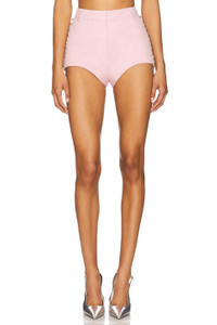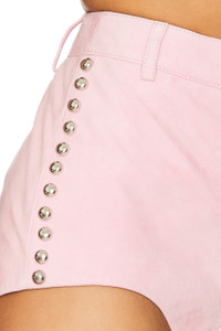 - Self: 100% real goat suede leather Lining: 100% modal - Special leather cleaning only - Zip fly with hook and bar closure - Silver-tone studded detailing - Midweight goat suede - Item not sold as a set - Shorts measure approx 9" in length - Revolve Style No. ROFR-WF68 - Manufacturer Style No. R-SS25-11110-15