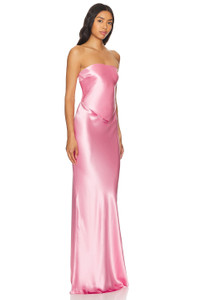 - Self: 76% acetate 24% polyester Lining: 97% polyester 3% spandex - Made in China - Dry clean only - Unlined - Hidden back zipper closure - Back cut-out with tie detail - Midweight satin fabric with back vent - Neckline to hem measures approx 62" in length - Revolve Style No. ROFR-WD761 - Manufacturer Style No. PF24-9473