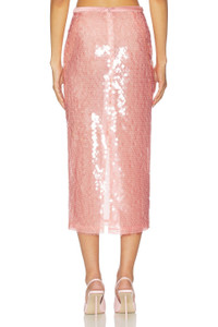 - Self: 100% polyester Lining: 95% polyester 5% spandex Contrast Fabric: 85% polyester 15% rayon - Dry clean only - Fully lined with mesh fabric - Hidden back zip closure - Front bow detailing - Midweight sequin fabric - Item not sold as a set Garment is made with a semi-sheer fabric, undergarments can show through - Skirt measures approx 34" in length - Revolve Style No. ROFR-WQ205 - Manufacturer Style No. R-FW25-11795-16