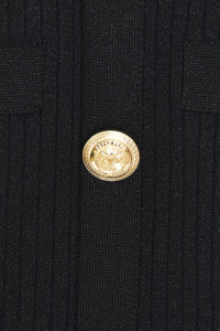 - 60% rayon 32% nylon 3% spandex 5% metallic - Made in China - Dry clean only - Unlined - Pull-on styling - Gold-tone front and cuff button detailing - Heavyweight ribbed knit fabric - Revolve Style No. ROFR-WD850 - Manufacturer Style No. FW24-9693
