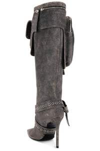 - Leather upper with leather sole - Made in Italy - Pull-on styling - Detachable zippered panel with dual functional cargo pockets - Boot hardness with silver-tone hardware - Pointed toe with stiletto heel - Approx 100mm/ 4 inch heel Approx 362mm/ 14.25 inch shaft Shaft measures approx 12.56" in circumference - Revolve Style No. ROFR-WZ7 - Manufacturer Style No. SH24-8699