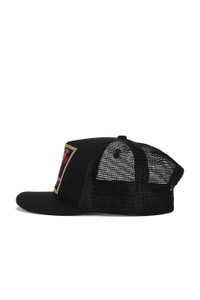 - Self: 100% cotton Contrast Fabric: 100% polyester - Made in USA of imported materials - Adjustable back strap - Front graphic - Ventilating eyelets at top - Mesh back panel - Brim measures approx 2" in length OS measures approx 23" in circumference - Revolve Style No. RHUF-MA106 - Manufacturer Style No. RHPF25HA01747