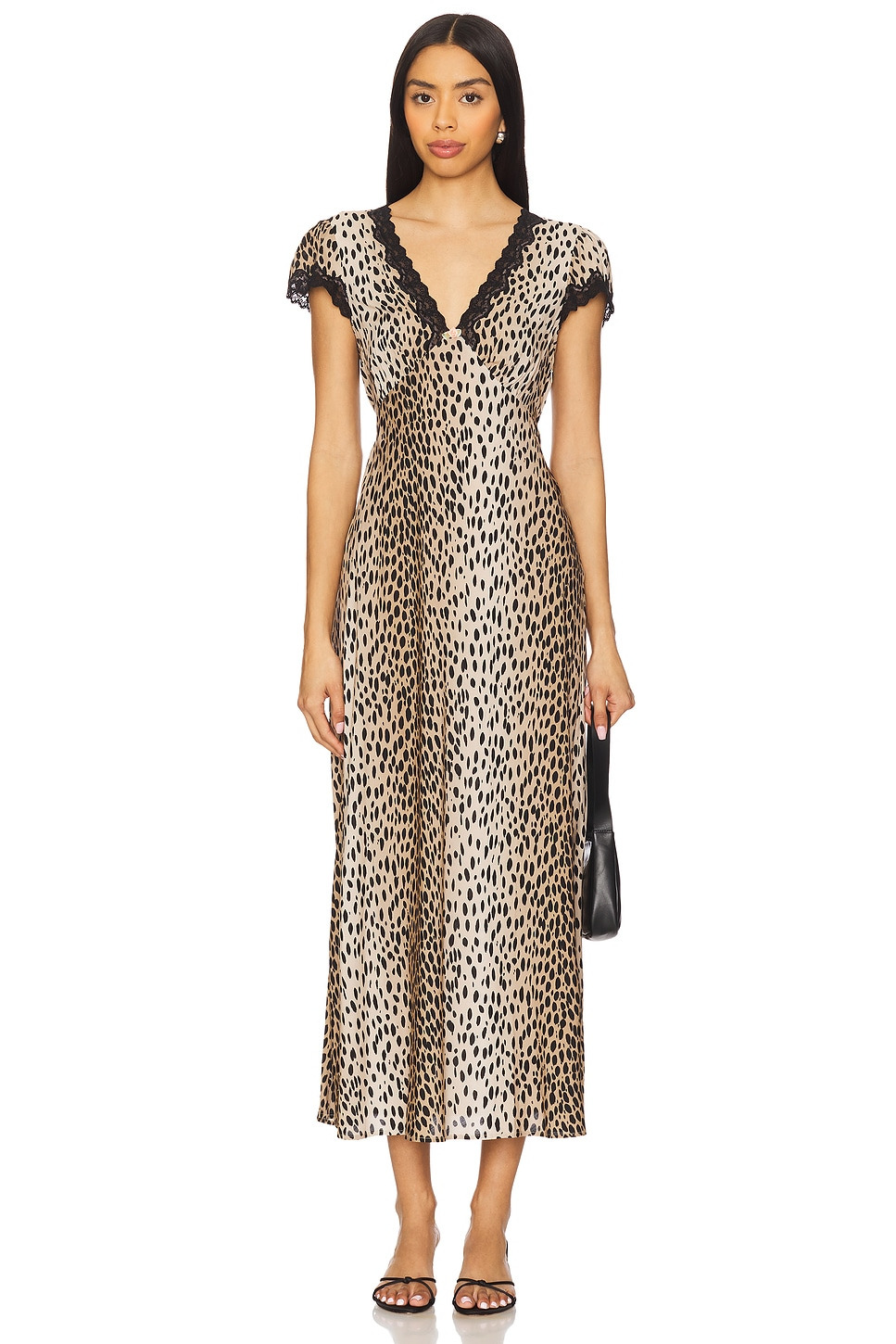 - Self: 100% viscose Contrast Fabric: 86% polyamide 14% elastane - Made in China - Dry clean only - Unlined - Concealed side zipper with attached waist self-tie straps - Lightweight satin fabric with rosette accent and lace trim - Revolve Style No. RIXR-WD36 - Manufacturer Style No. 010.01762.125.06046