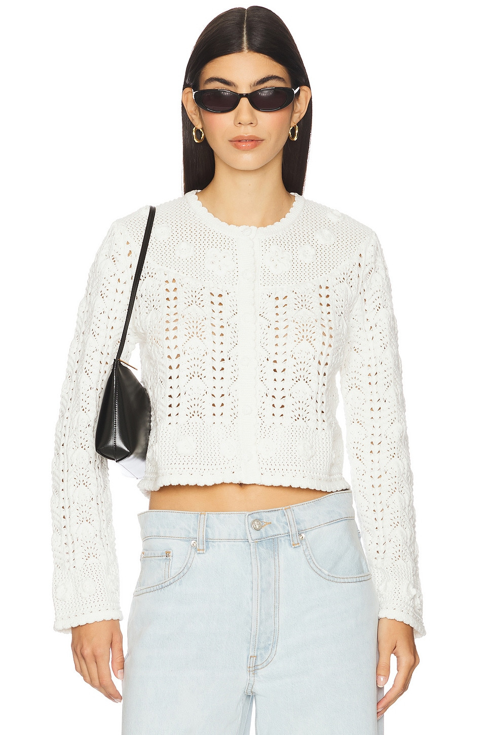 - 100% cotton - Hand wash cold - Front button closure.3D floral detailing - Open crochet design - Midweight crochet fabric - Garment has semi-sheer accents, undergarments can show through - Revolve Style No. RIXR-WK2 - Manufacturer Style No. 326.05359.325.06020