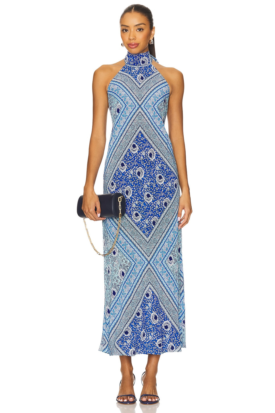 - 100% viscose - Dry clean only - Unlined - Halter self-tie closure - Floral design throughout - Midweight linen fabric - Revolve Style No. RIXR-WD49 - Manufacturer Style No. 010.05378.325.06858