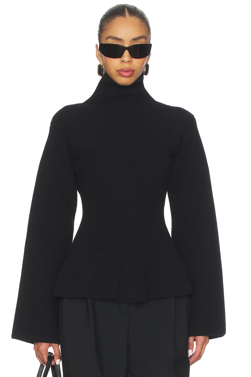 - 70% wool 30% cashmere - Made in Italy - Dry clean only - Pull-on styling - Turtleneck - Tapered waist silhouette - Peplum hem - Wide sleeves - Revolve Style No. ROHR-WK2 - Manufacturer Style No. 417-23-313