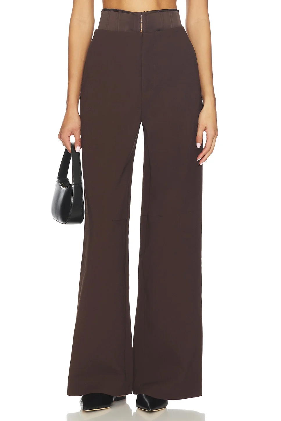 - Self: 100% recycled polyester Lining: 52% polyester 48% viscose - Dry clean only - Zip fly with hook and bar closure - Detachable boned waistband with hook and bar closure and back lace-up tie - Side seam pockets and back faux welt pockets - Heavyweight suit fabric - Item not sold as a set.22" at the leg opening - Revolve Style No. TATE-WP18 - Manufacturer Style No. 1149412910