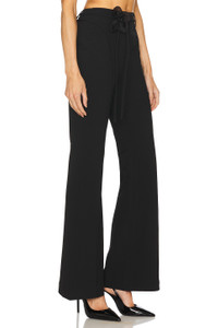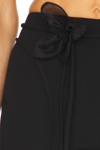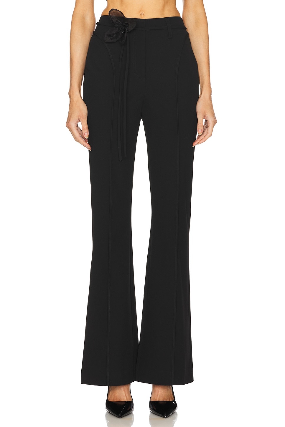 - 63% recycled polyester 33% viscose 4% elastane - Made in China - Machine wash - Zip fly with button closure - Detachable self-tie belt strap Flower accent attached to belt strap - Midweight twill fabric with faux back pockets - Item not sold as a set.17" at the knee breaks to 22" at the leg opening - Revolve Style No. TATE-WP12 - Manufacturer Style No. 113592100