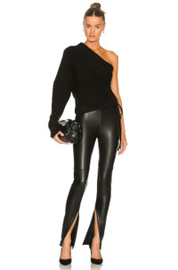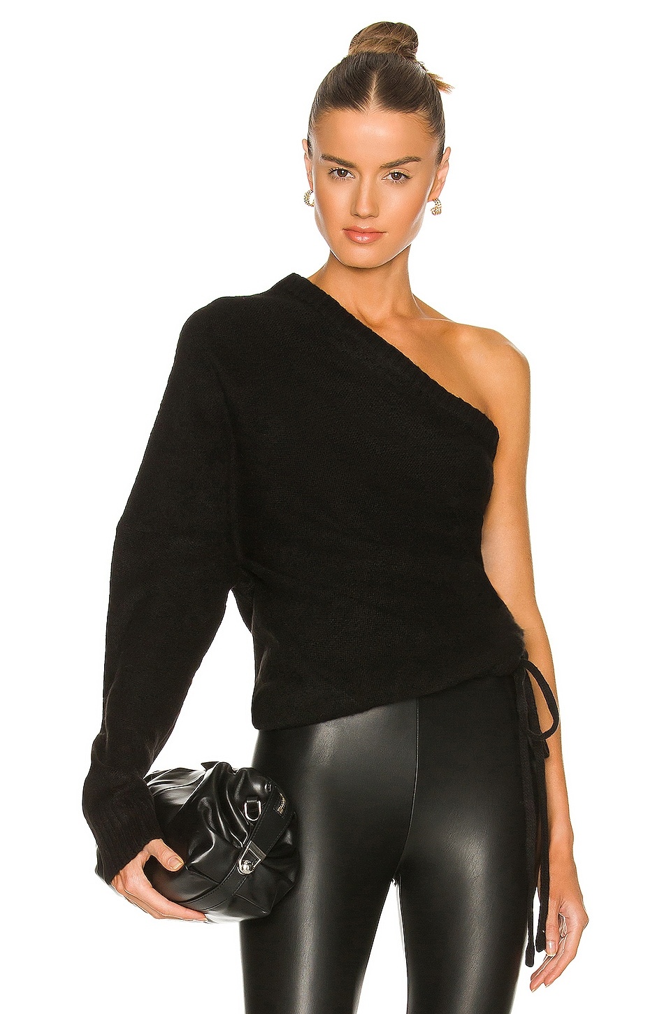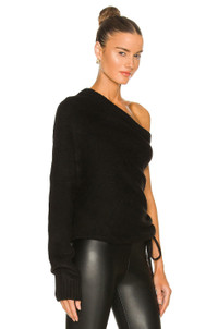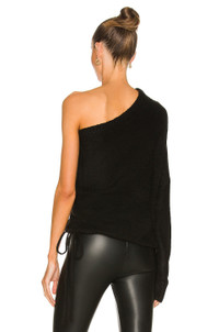 - 57% acrylic 40% nylon 3% wool - Made in China - Dry clean only - One shoulder styling - Blouson sleeve - Ruched drawstring side - Fuzzy knit fabric with banded hem - Revolve Style No. RTAR-WK88 - Manufacturer Style No. WH21-S596-2056BLACK
