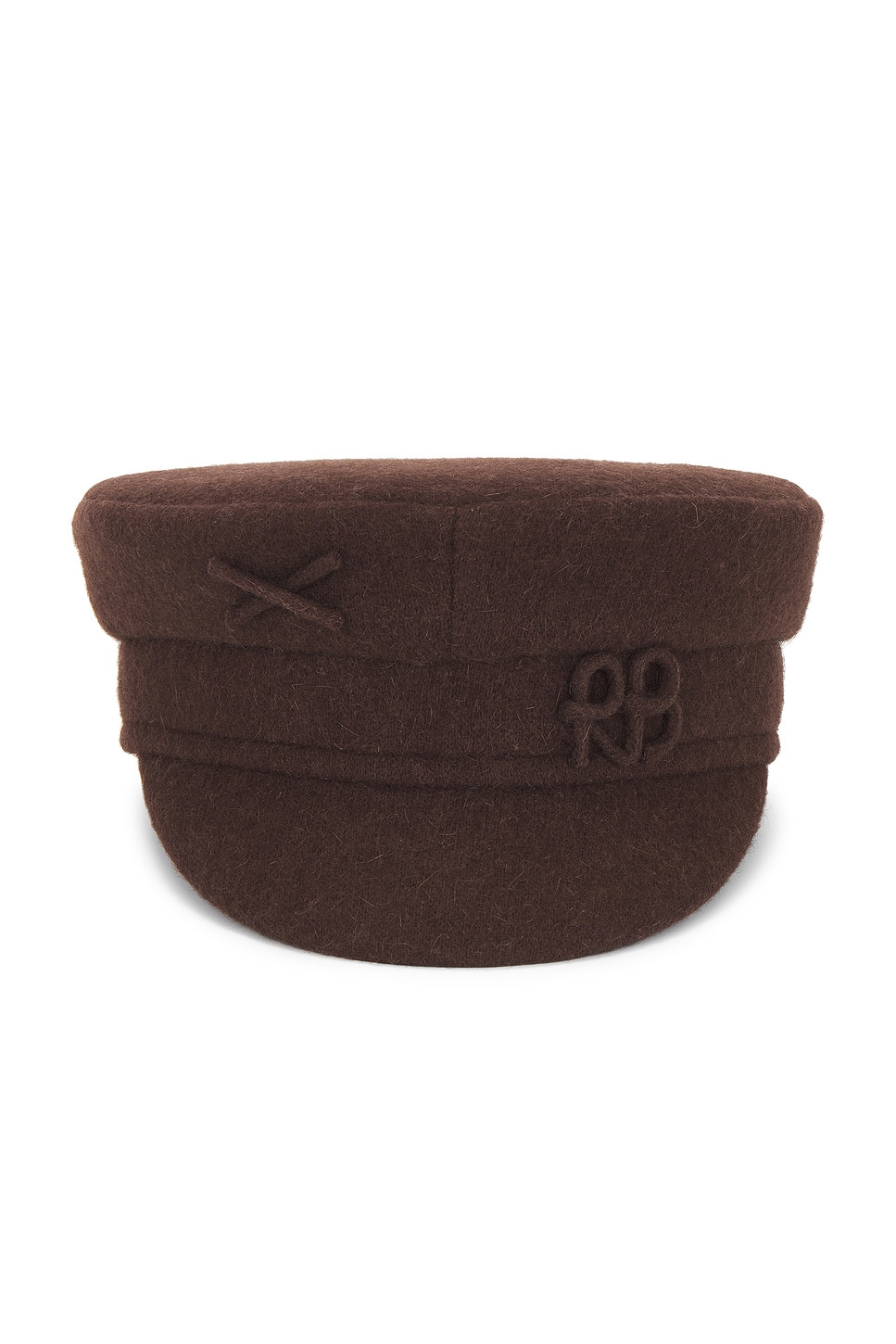 - Melton baker boy cap - Tonal Ruslan Baginskiy monogram at front - Revolve Style No. RUSR-WA174 - Manufacturer Style No. KPC09-WA-FRB