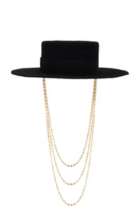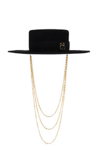 - Self: 100% felt Trim: 100% cotton - Made in Ukraine - Spot clean only - Gold-tone logo initials at front - Detachable gold-tone layered chain chin strap - Brim measures approx 3.5" in length OS measures approx 24" in circumference - Revolve Style No. RUSR-WA148 - Manufacturer Style No. CNT033-F-3CHA-9P-MRB