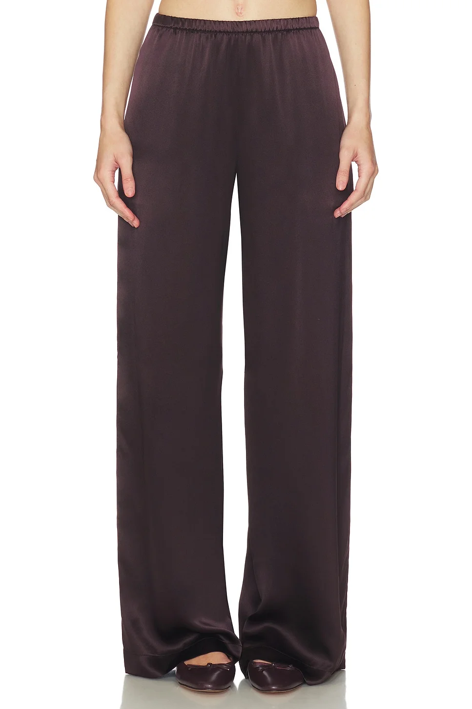 - 100% silk - Made in U - S. - Dry clean only - Pull-on styling - Lightweight satin fabric - Elasticized waistband.2 pocket styling.12" at the leg opening - Revolve Style No. SLYN-WP18 - Manufacturer Style No. LEXI2506