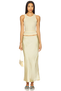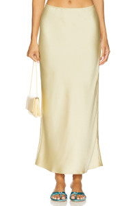 - 100% recycled polyester - Machine wash cold - Unlined - Pull-on styling with elastic waistband - Midweight charmeuse fabric - Item not sold as a set - Skirt measures approx 37" in length - Revolve Style No. SSAM-WQ3 - Manufacturer Style No. F24200090