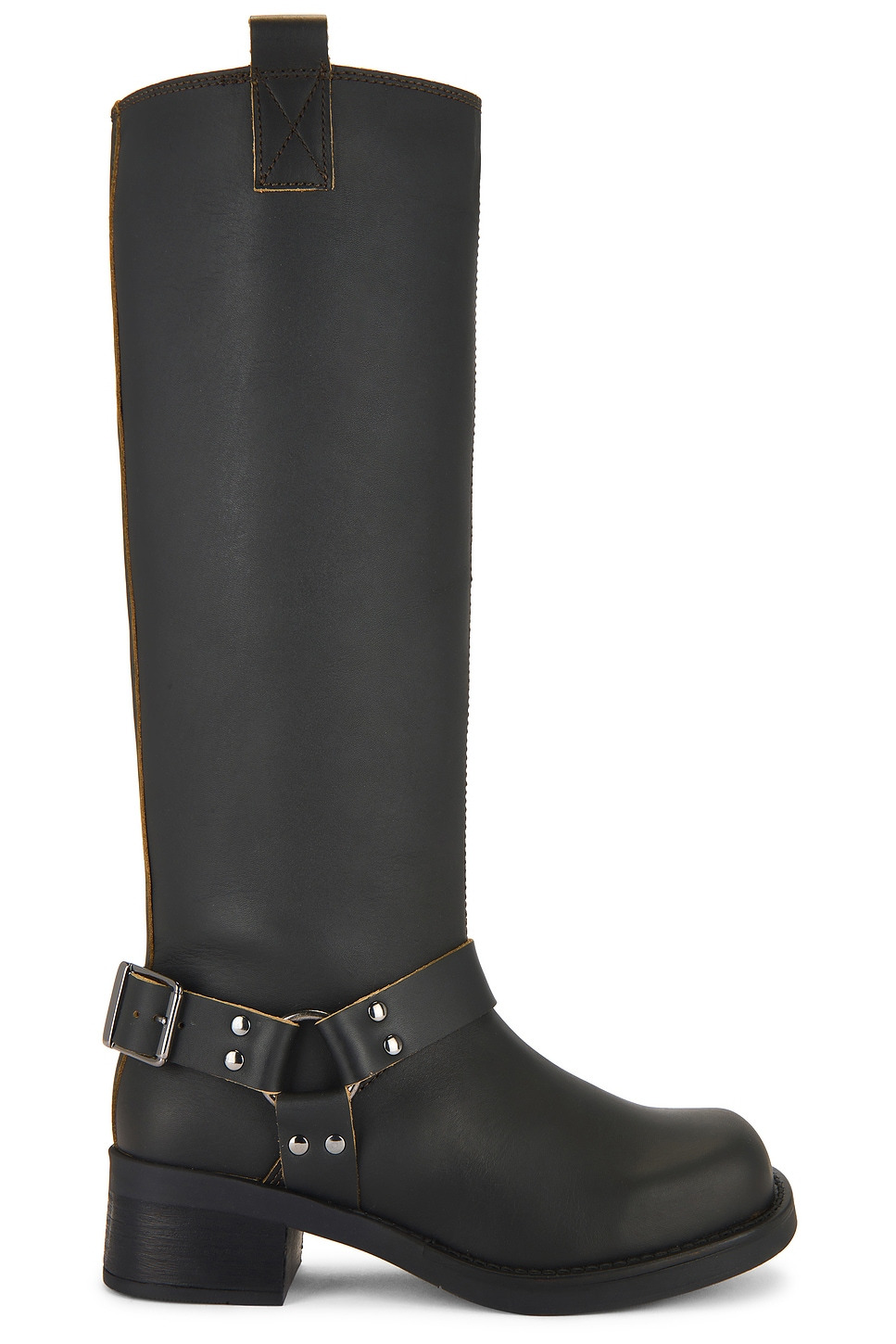 - Genuine leather upper with manmade sole - Pull-on styling - Silver-tone buckle detail - Side pull-tabs - Squared toe - Approx 50mm/ 2 inch heel Approx 381mm/ 15 inch shaft Opening measures approx 19" in circumference - Revolve Style No. SSAM-WZ1 - Manufacturer Style No. F25300123