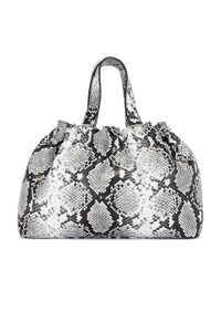 - Snake embossed faux leather exterior with textile lining - Top magnetic button closure - One main compartment - Interior slip pocket - Front slip pocket - Integrated handles - Detachable and adjustable shoulder strap - Measures approx 11" W x 7.25" H x 2.5" D Shoulder strap with a 12.5" drop Top handle with a 5" drop - Revolve Style No. SSAM-WY2 - Manufacturer Style No. F25200161