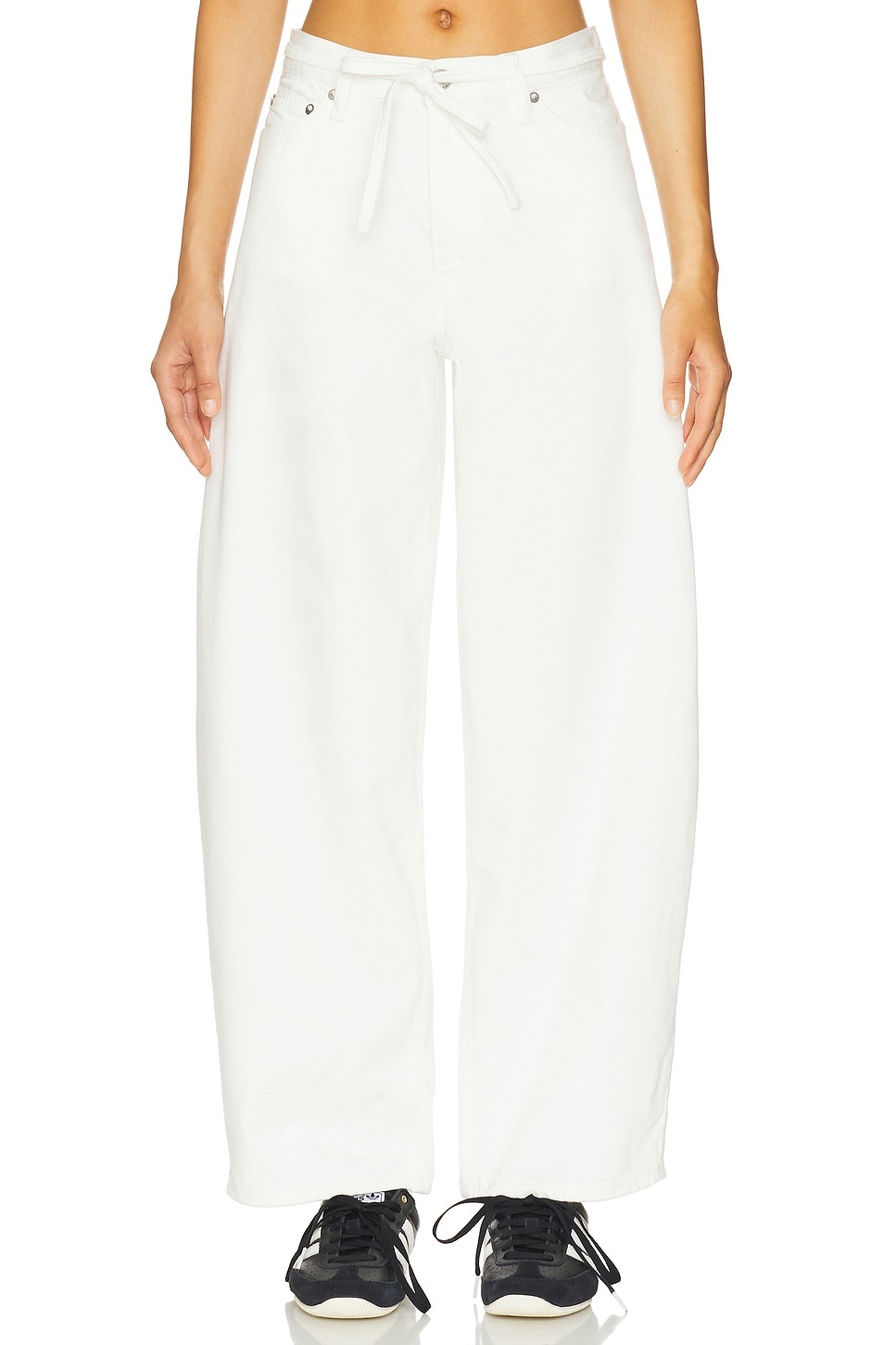 - 100% cotton - Machine wash - Zip fly with button closure - Attached waist tie.5-pocket design - Midweight denim fabric.24" at the knee narrows to 19" at the leg opening - Revolve Style No. SSAM-WJ4 - Manufacturer Style No. F25200007