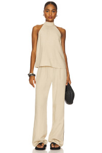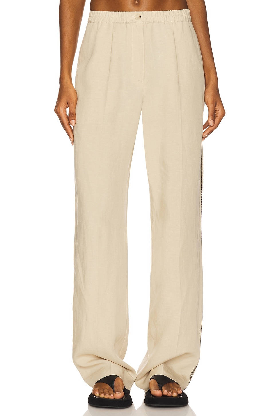- 75% lyocell 25% linen - Machine wash cold - Zip fly and button closure - Elastic waistband - Side seam pockets - Lightweight canvas fabric with front pleats and contrast stitching at sides - Item not sold as set.21" at the knee narrows to 20" at the leg opening - Revolve Style No. SSAM-WP8 - Manufacturer Style No. F25200069