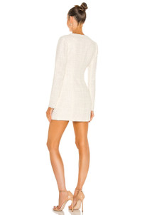 - Self: 80% poly 20% acrylic Lining: 100% rayon - Hand wash cold - Fully lined - Acrylic pearl front button closure - Front pockets - Tweed fabric with frayed trim - Imported - Revolve Style No. SLEE-WD29 - Manufacturer Style No. FW20-ED15