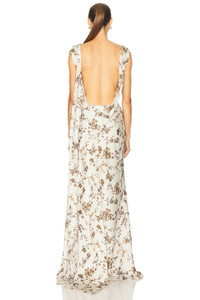 - Self: 100% polyester Lining: 97% polyester 3% spandex - Hand wash - Fully lined - Hidden side zipper closure - Open back styling with draping accents - Revolve Style No. SLEE-WD464 - Manufacturer Style No. F25D14