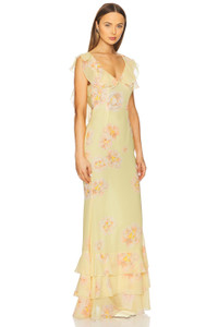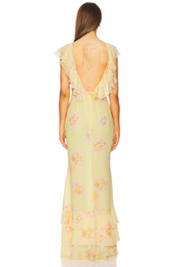- Lightweight chiffon textile - Imported - Dry clean recommended - Fully lined - Hidden back zipper closure - Open back with tie closure - Lightweight chiffon fabric - Revolve Style No. SLEE-WD373 - Manufacturer Style No. S25D12