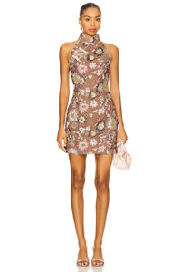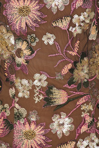- Shell: 100% polyester Lining: 100% polyester - Hand wash cold - Fully lined - Hidden back zipper closure - Sequin embellished floral fabric design - Revolve Style No. SLEE-WD470 - Manufacturer Style No. F25D52
