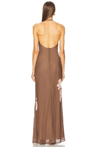 - Self & Lining: 100% polyester - Hand wash - Fully lined - Hidden back zip closure - Halterneck styling with hook and eye closure - Midweight chiffon fabric - Revolve Style No. SLEE-WD434 - Manufacturer Style No. P25D44