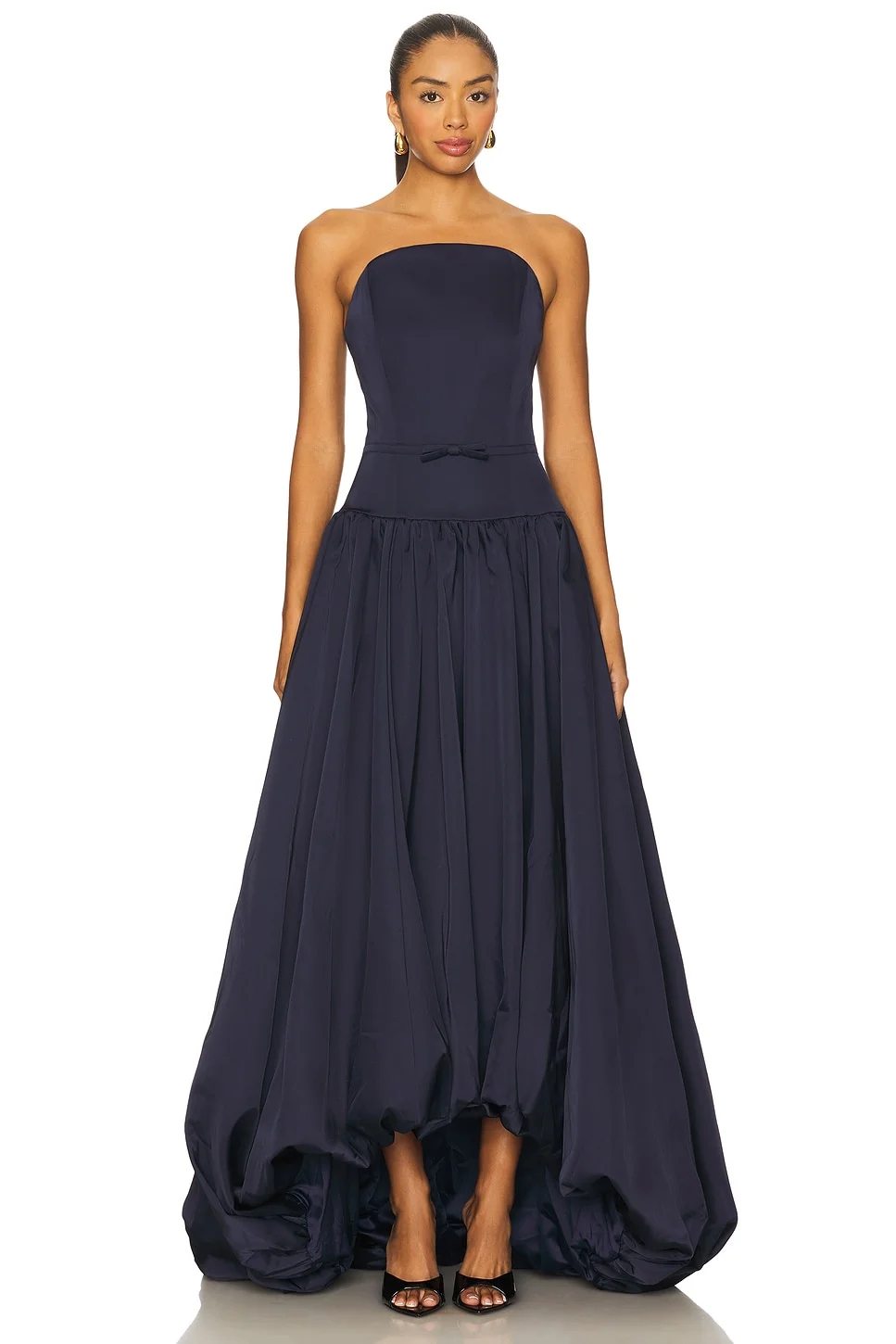 - Self: 100% polyester Lining: 97% polyester 3% spandex - Hand wash - Double lined - Hidden back zipper closure - Boned bodice - Heavyweight satin fabric - Neckline to shortest hem measures approx 55" and to longest hem approx 60" in length - Revolve Style No. SLEE-WD466 - Manufacturer Style No. F25D20