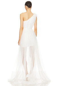 - Shell: 100% polyester Lining: 100% polyester - Made in China - Hand wash - Partially lined - Hidden side zipper closure - Flared shoulder Surplice skirt - Chiffon fabric with detachable draped chiffon - Revolve Style No. SLEE-WD294 - Manufacturer Style No. S24D61