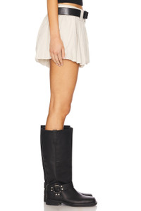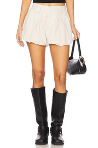 - 100% cotton - Machine wash cold - Zip fly and hook and bar closure - Belt with buckle closure included - Elastic bubble hem design - Side seam pockets - Midweight pleated twill fabric - Shorts measure approx 12.5" in length - Revolve Style No. SEA-WF2 - Manufacturer Style No. SS25-017