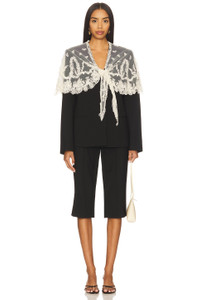 - 51% polyester 44% wool 5% spandex - Dry clean only - Zip fly and button closure - Front pockets - Lightweight suiting fabric.16" at the leg opening - Revolve Style No. SEA-WP9 - Manufacturer Style No. RS26-092