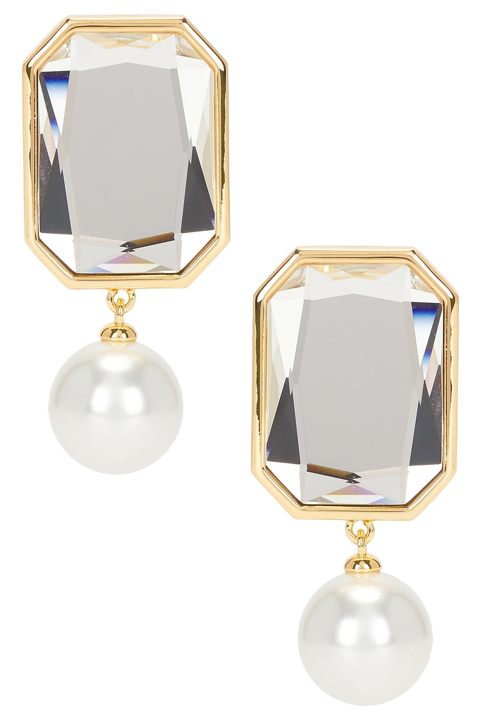 - 18k gold-plated metal with clear crystal and faux pearl - Made in China - Post-back closure - Measures approx 1.75" dangling - Revolve Style No. SELF-WL11 - Manufacturer Style No. SS25-604E-GD