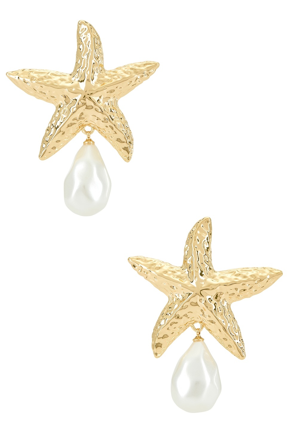 - 18k gold-plated brass with faux pearl drop - Made in China - Post-back closure - Measures approx 2.5" dangling - Revolve Style No. SELF-WL24 - Manufacturer Style No. SS25-613E-GD