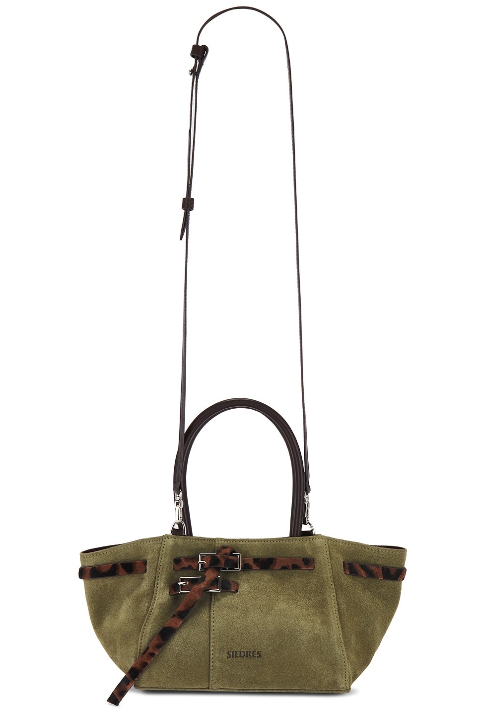 - Calf suede exterior with dyed calf hair trim and twill lining - Made in Turkey - Top magnetic button closure - One main compartment - Interior slip pocket - Dual leather shoulder straps - Detachable and adjustable leather crossbody strap - Measures approx 8" W x 6" H x 4" D Shoulder strap with a 20" drop Top handle with a 5" drop - Revolve Style No. SRER-WY6 - Manufacturer Style No. WSS25BG11KH