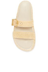 - Raffia upper with gold-plated buckle and rubber sole - Slip-on with buckle closure - Leather footbed with embossed logo - Approx 13mm/ .75 inch platform - Revolve Style No. JSKI-WZ61 - Manufacturer Style No. 225-S001-R