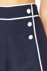 - 55% linen 45% viscose - Made in China - Hand wash - Hidden side zipper closure - Linen fabric with button accents - Item not sold as set - Shorts measure approx 13.5" in length - Revolve Style No. JSKI-WF30 - Manufacturer Style No. 125-4122-SW