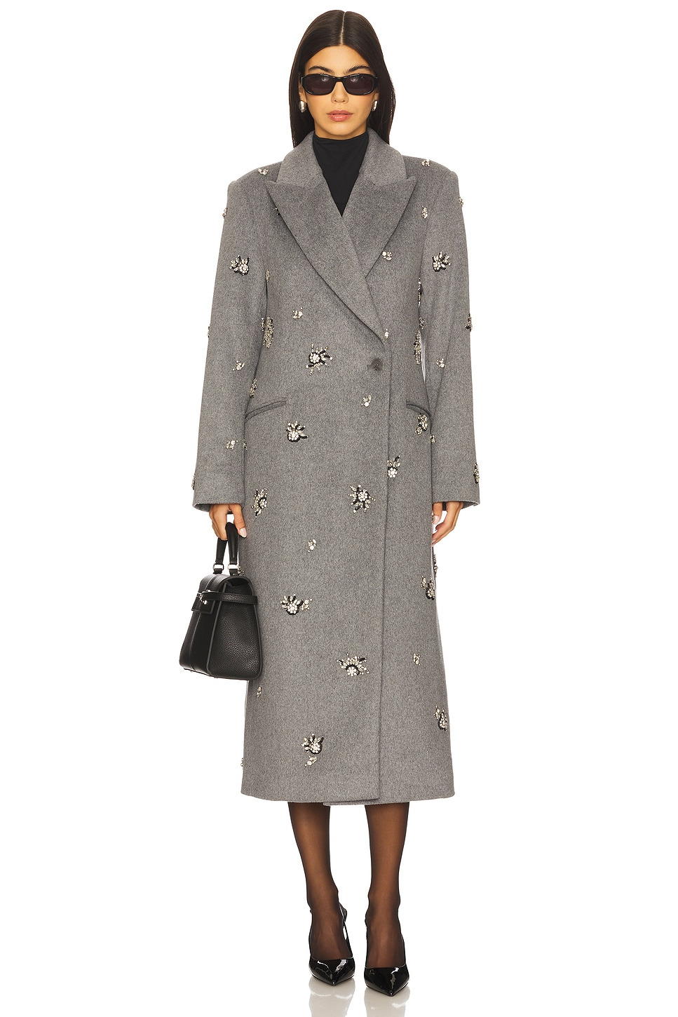 - Self: 50% wool 50% polyester Lining: 55% polyester 45% viscose - Dry clean only - Front button closure - Front welt pockets - Embellished rhinestone detailing - Padded shoulders - Notched lapel collar - Heavyweight melton fabric - Revolve Style No. JSKI-WO70 - Manufacturer Style No. 525-7000-WL
