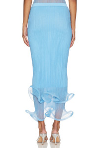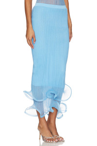 - Self: 100% polyester Lining: 85% rayon 13% polyester 2% nylon - Made in China - Dry clean only - Partially lined - Pull-on styling - Mesh fabric with structured hem ruffles - Skirt measures approx 34" in length - Revolve Style No. JSKI-WQ101 - Manufacturer Style No. 224-3016-K