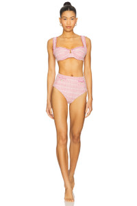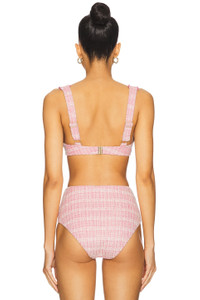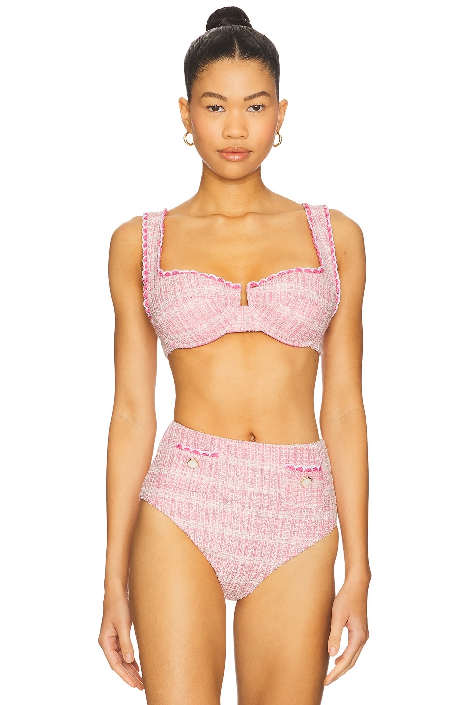 - Self: 90% polyester 5% spandex 5% rayon Lining: 80% polyamide 20% spandex - Hand wash - Padded and underwire cups - Back S-hook closure - Adjustable shoulder straps - Midweight tweed fabric with crochet trim - Item not sold as a set - Revolve Style No. JSKI-WX230 - Manufacturer Style No. 325-9069-SW