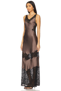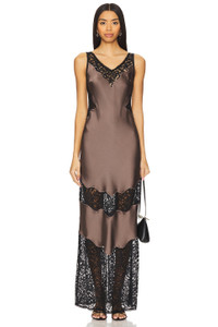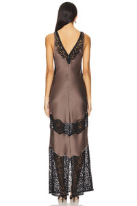 - Self 1: 89% acetate 11% polyester Self 2: 34% cotton 34% rayon 32% nylon Self 3: 100% cotton - Made in China - Dry clean only - Unlined - Hidden back zipper closure - Satin fabric with lace detail - Revolve Style No. JSKI-WD477 - Manufacturer Style No. 125-1094-LC