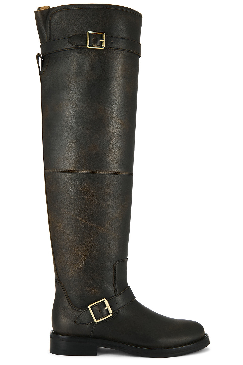 - Smooth calf leather upper with leather outsole - Pull-on style with back tab - Sheep leather lining - Round toe silhouette - Approx 40mm/ 1.5 inch heel Approx 368mm/ 14.5 inch shaft Shaft measures approx 11.77" in circumference - Revolve Style No. JSKI-WZ82 - Manufacturer Style No. 525-S004-LEA