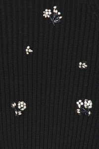 - 90% wool 10% cashmere - Made in China - Dry clean only - Front button closure - Decorative bead and rhinestones throughout - Heavyweight knit fabric - Revolve Style No. JSKI-WK116 - Manufacturer Style No. 525-2205-K-CRYSTAL