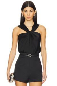 - Self: 89% acetate 11% polyester Contrast Fabric: 100% rayon - Made in China - Dry clean only - Pull-on styling - Knot detail - Satin fabric front and ponte back panel - Revolve Style No. JSKI-WS331 - Manufacturer Style No. 125-2152-W