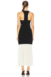 - Self: 72% rayon 15% polyester 12% nylon 1% spandex Contrast Fabric: 100% polyester - Dry clean only - Unlined - Pull-on styling - Side cut-outs - Pleated satin skirt - Midweight knit jersey fabric - Revolve Style No. JSKI-WD562 - Manufacturer Style No. 425-1151-K