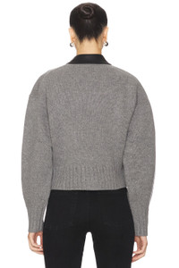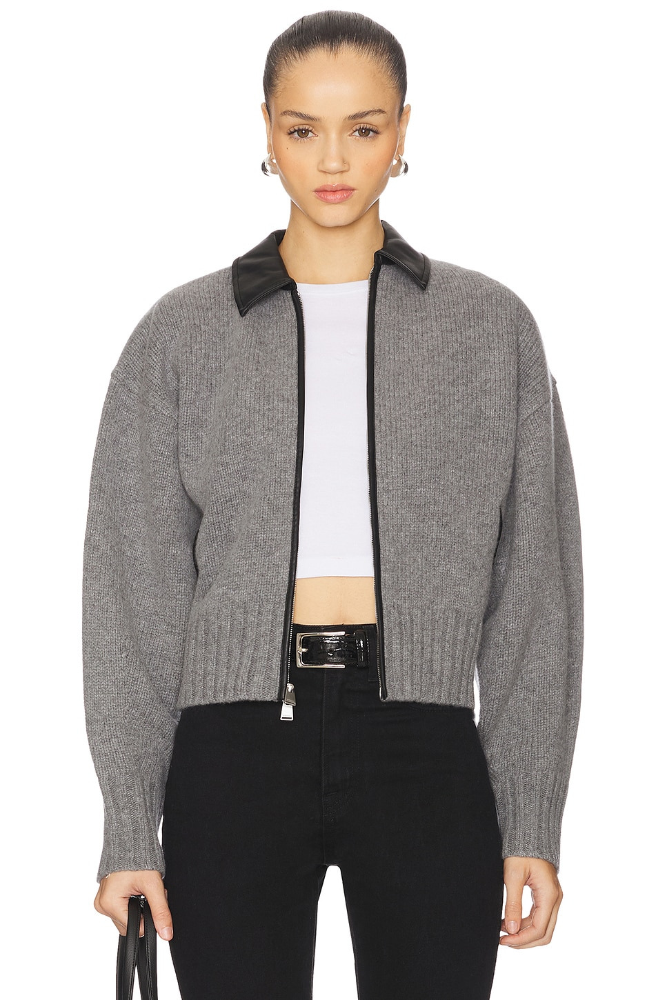 zip-up leather-collar cardigan