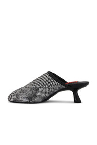 - Clear crystal upper with manmade sole - Made in China - Slip-on styling - Faux leather footbed and lining - Rounded toe with kitten heel - Approx 50mm/ 2 inch heel - Revolve Style No. SIMO-WZ49 - Manufacturer Style No. F290-9197