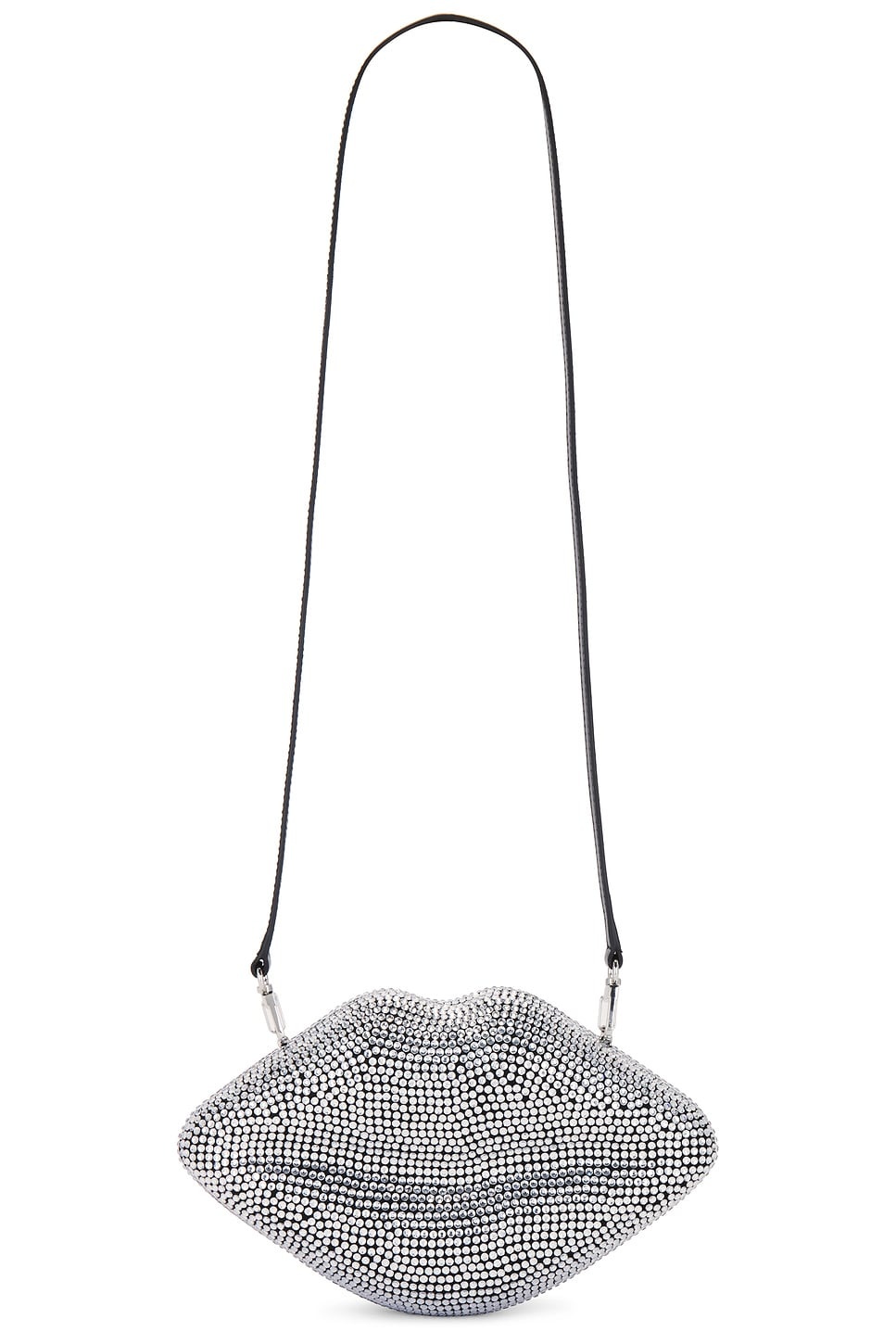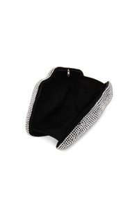 - Crystal embellished exterior with textile lining - Made in China - Structured frame with kisslock closure - One main compartment - Detachable faux leather shoulder strap - Measures approx 10" W x 5.5" H x 1.5" D Shoulder strap with a 13" drop - Revolve Style No. SIMO-WY80 - Manufacturer Style No. S1042-9197