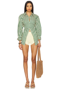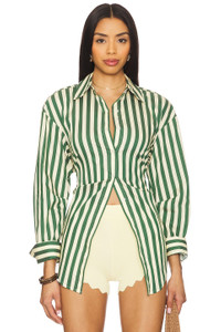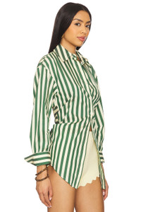 Loch Poplin Button Up In Gummy Green/Ecru